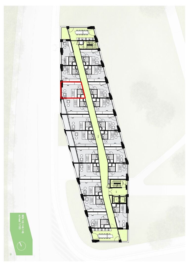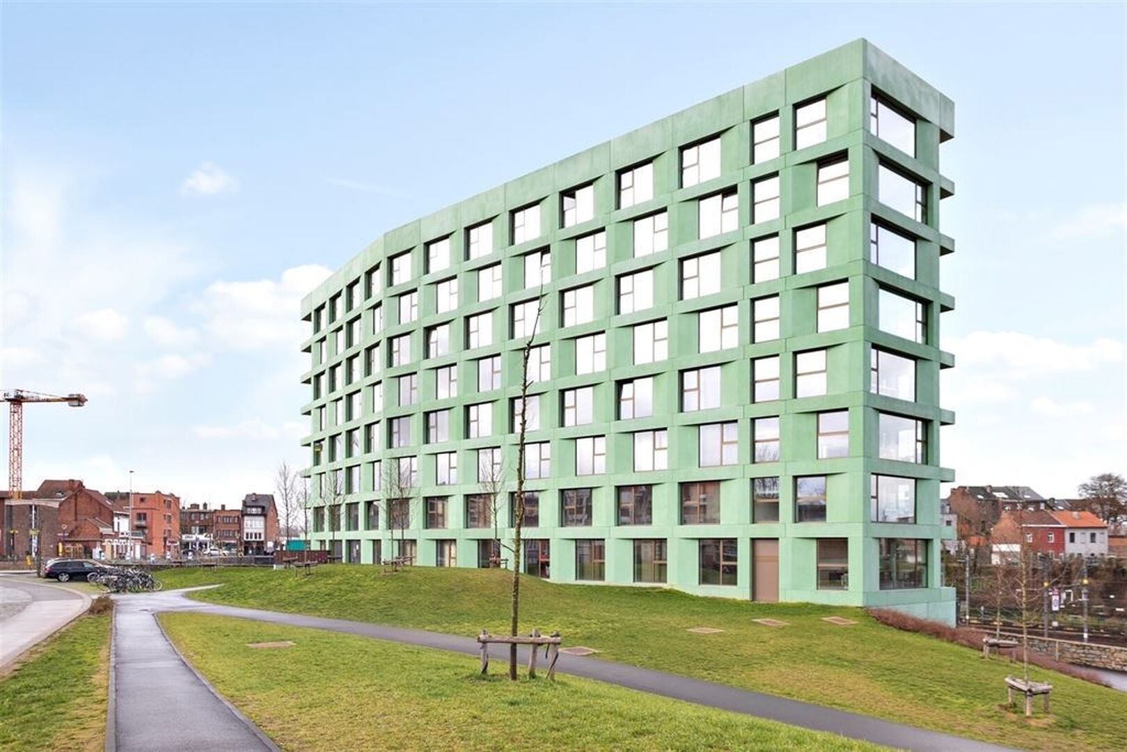 Modern room located in student residence Woods, near the Belle-Vue park. The residence is located a stone's throw from the center of Leuven, within walking distance of the train station and near several campuses.