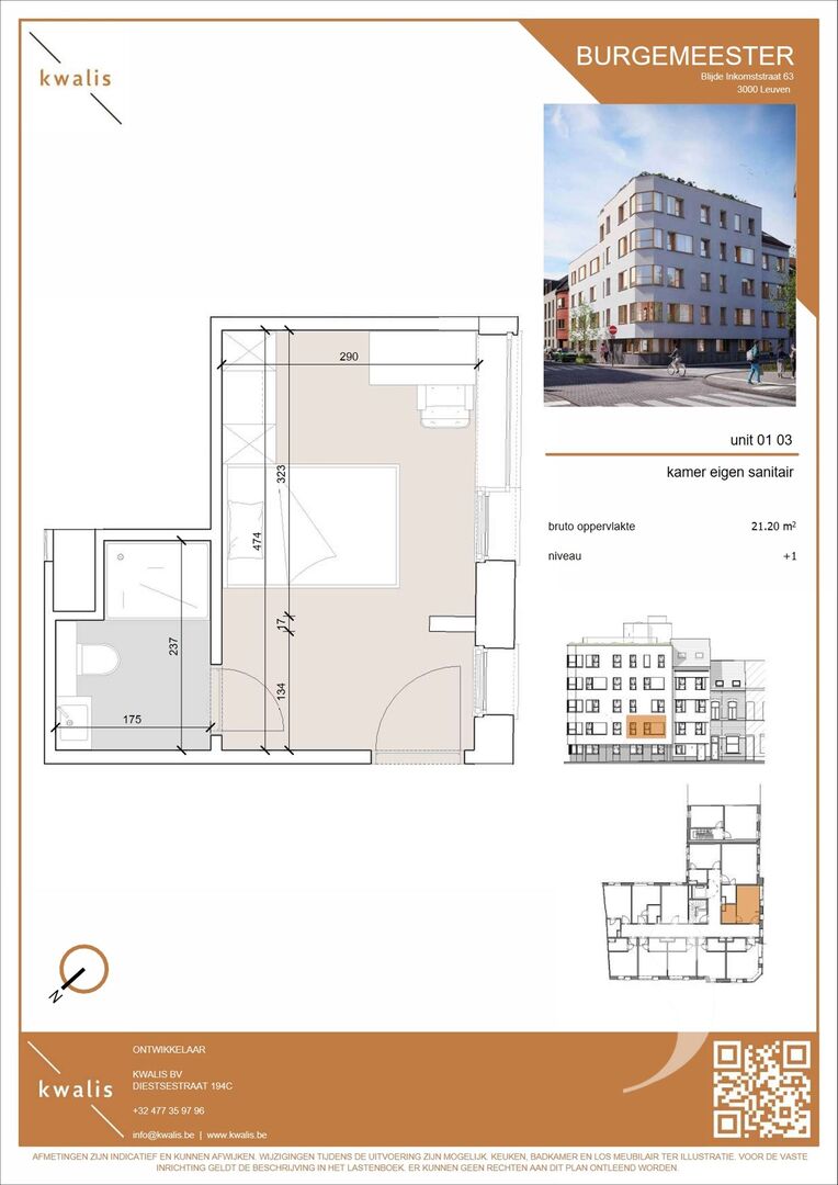 The unit is part of Student Residence Burgemeester: a high-quality student project with 41 quality student rooms and studios in the Blijde Inkomststraat in Leuven, within walking distance of faculties, station and the city center.