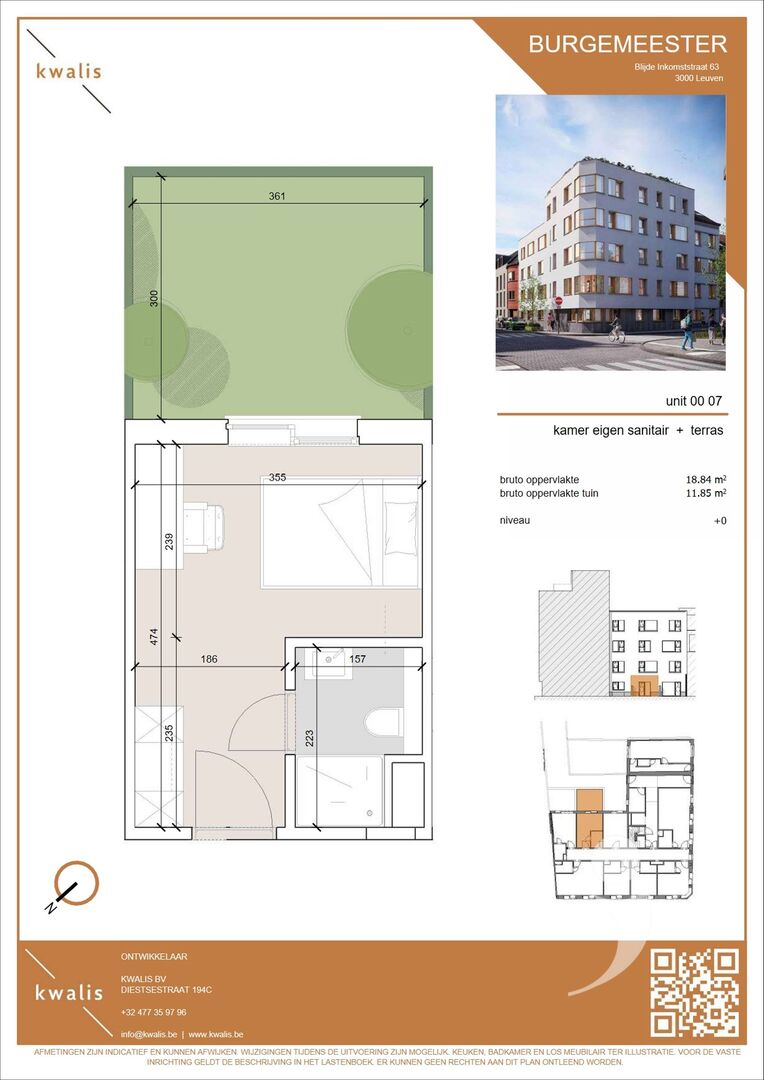 The unit is part of Student Residence Burgemeester: a high-quality student project with 41 quality student rooms and studios in the Blijde Inkomststraat in Leuven, within walking distance of faculties, train station and the city center.