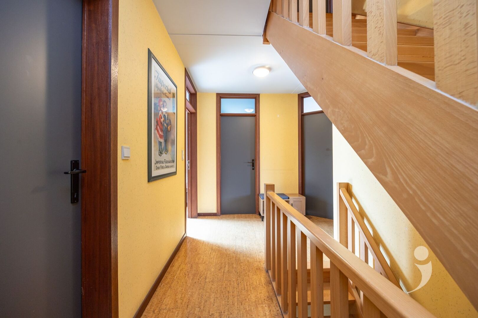 Upon entering the house you enter the spacious entrance hall with guest toilet. From here you walk through to the bright living space where large windows provide a pleasant view of the garden. The presence of a heat pump unit contributes to the contemporary living comfort. Adjacent is the practical kitchen with storage room. Behind the kitchen there is a spacious utility room/laundry room equipped with a shower.