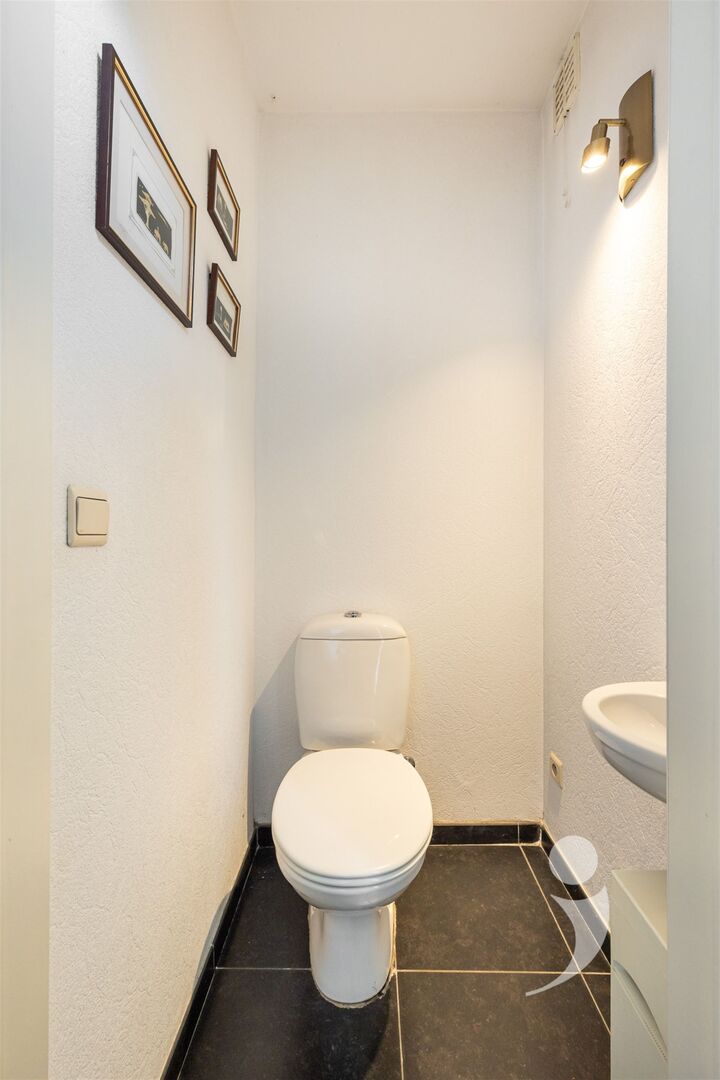 To the left of the entrance hall you will find a multipurpose room that can be completely furnished to your liking. This can perfectly serve as a home office, extra bedroom, practice room,... Furthermore, there is a spacious kitchen with dining area and view of terrace and garden.