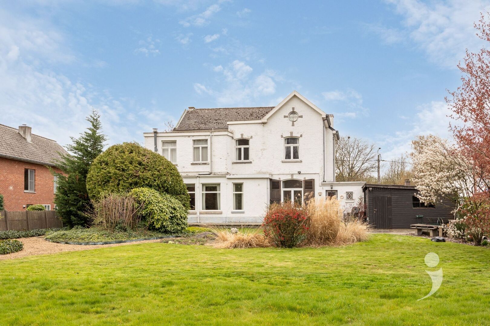 Outside you will enjoy a well-kept, fully fenced garden with lots of greenery, shrubs and an ornamental pond. There is also a large terrace. Next to the house is an attached garage box with automatic gate and additional parking in the driveway.