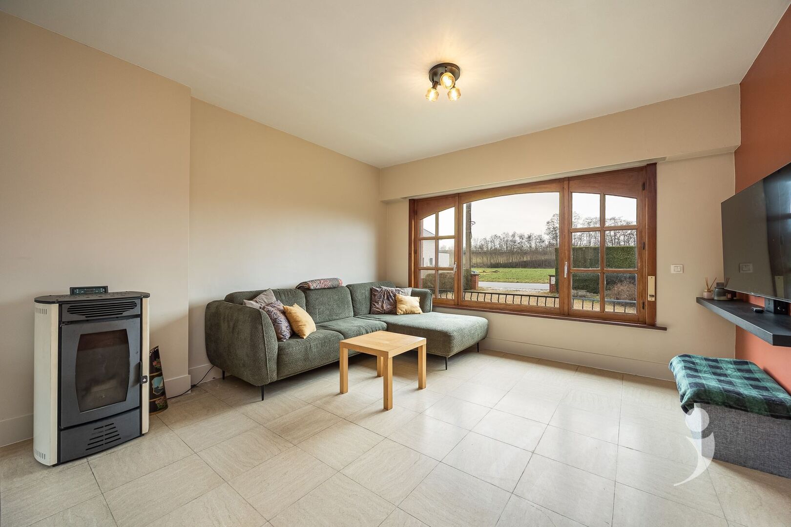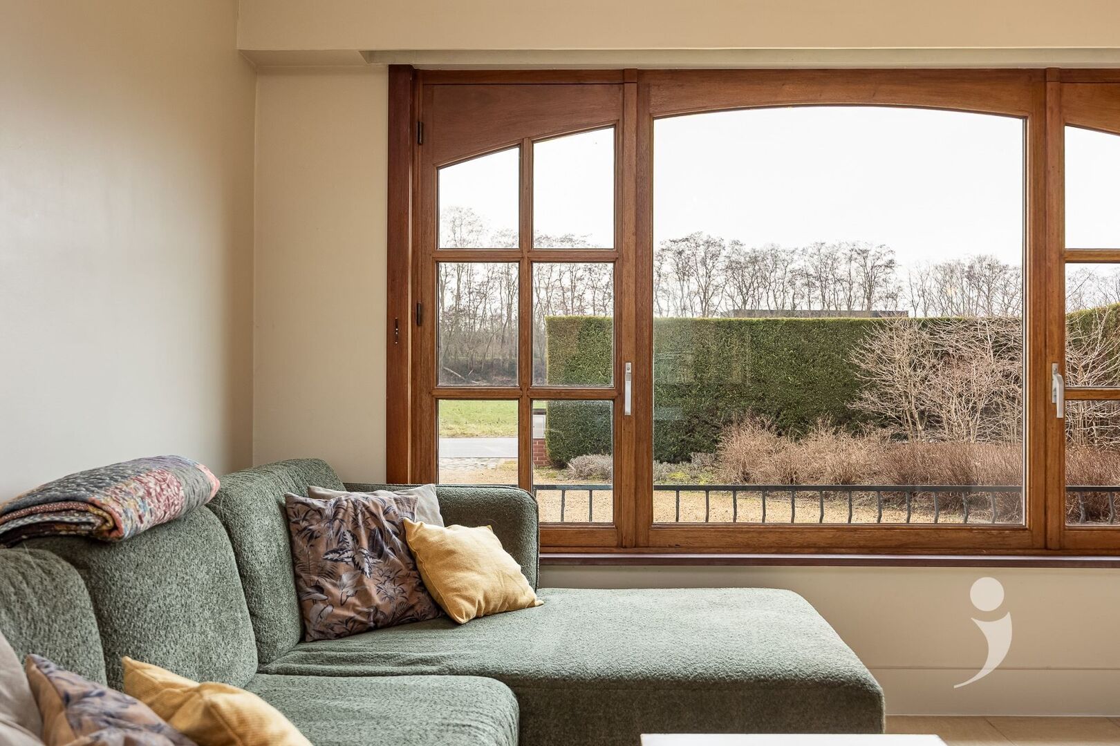Dankzij de vele raampartijen kan u in de leefruimte genieten van voldoende natuurlijk licht.
