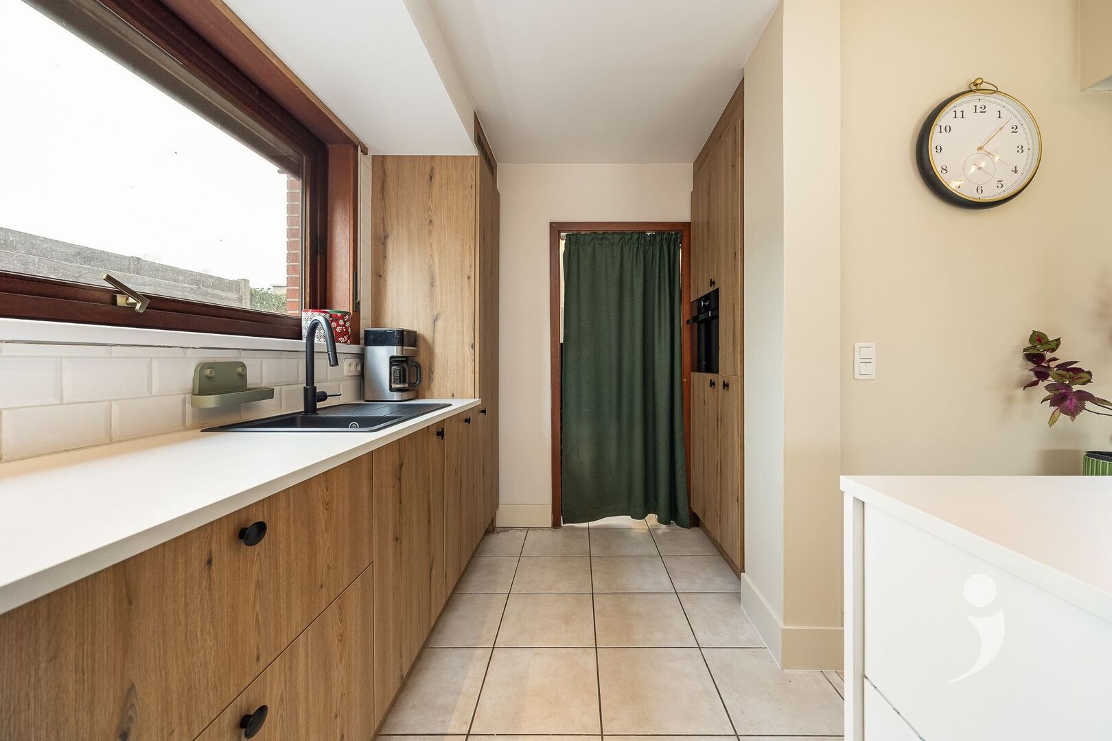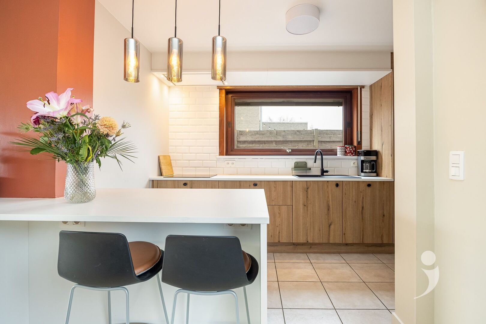 De open keuken is recent volledig vernieuwd en is voorzien van al het nodige comfort alsook voldoende kastruimte.