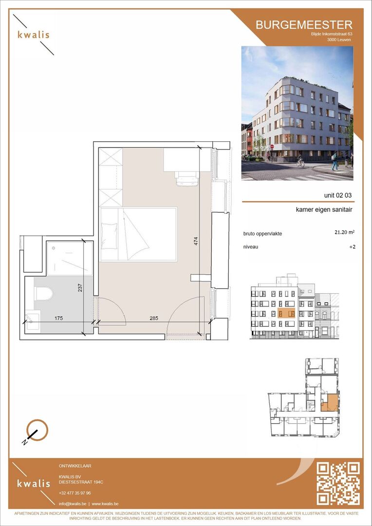 De unit maakt deel uit van Studentenresidentie Burgemeester: een hoogwaardig studentenproject met 41 kwalitatieve studentenkamers en studio’s in de Blijde Inkomststraat in Leuven, op wandelafstand van faculteiten, station en het stadscentrum.