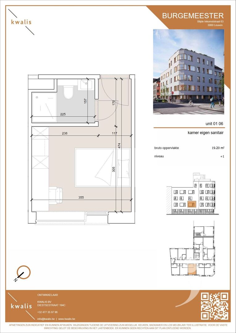 De unit maakt deel uit van Studentenresidentie Burgemeester: een hoogwaardig studentenproject met 41 kwalitatieve studentenkamers en studio’s in de Blijde Inkomststraat in Leuven, op wandelafstand van faculteiten, station en het stadscentrum.