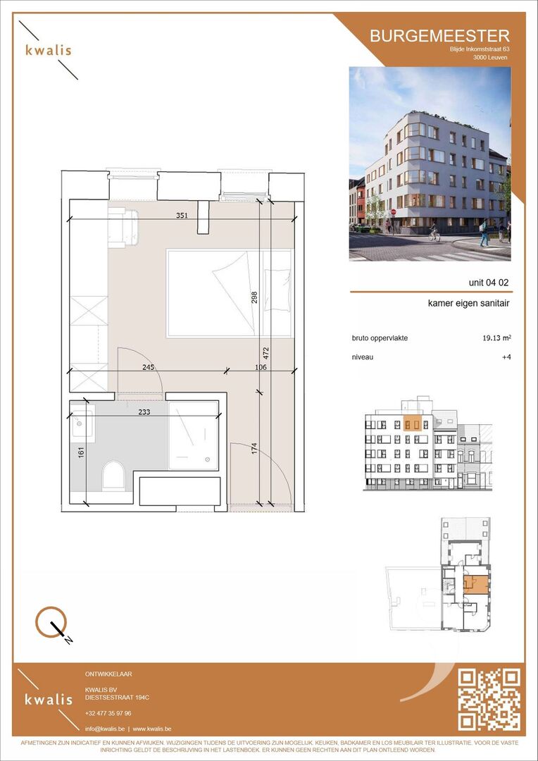 De unit maakt deel uit van Studentenresidentie Burgemeester: een hoogwaardig studentenproject met 41 kwalitatieve studentenkamers en studio’s in de Blijde Inkomststraat in Leuven, op wandelafstand van faculteiten, station en het stadscentrum.
